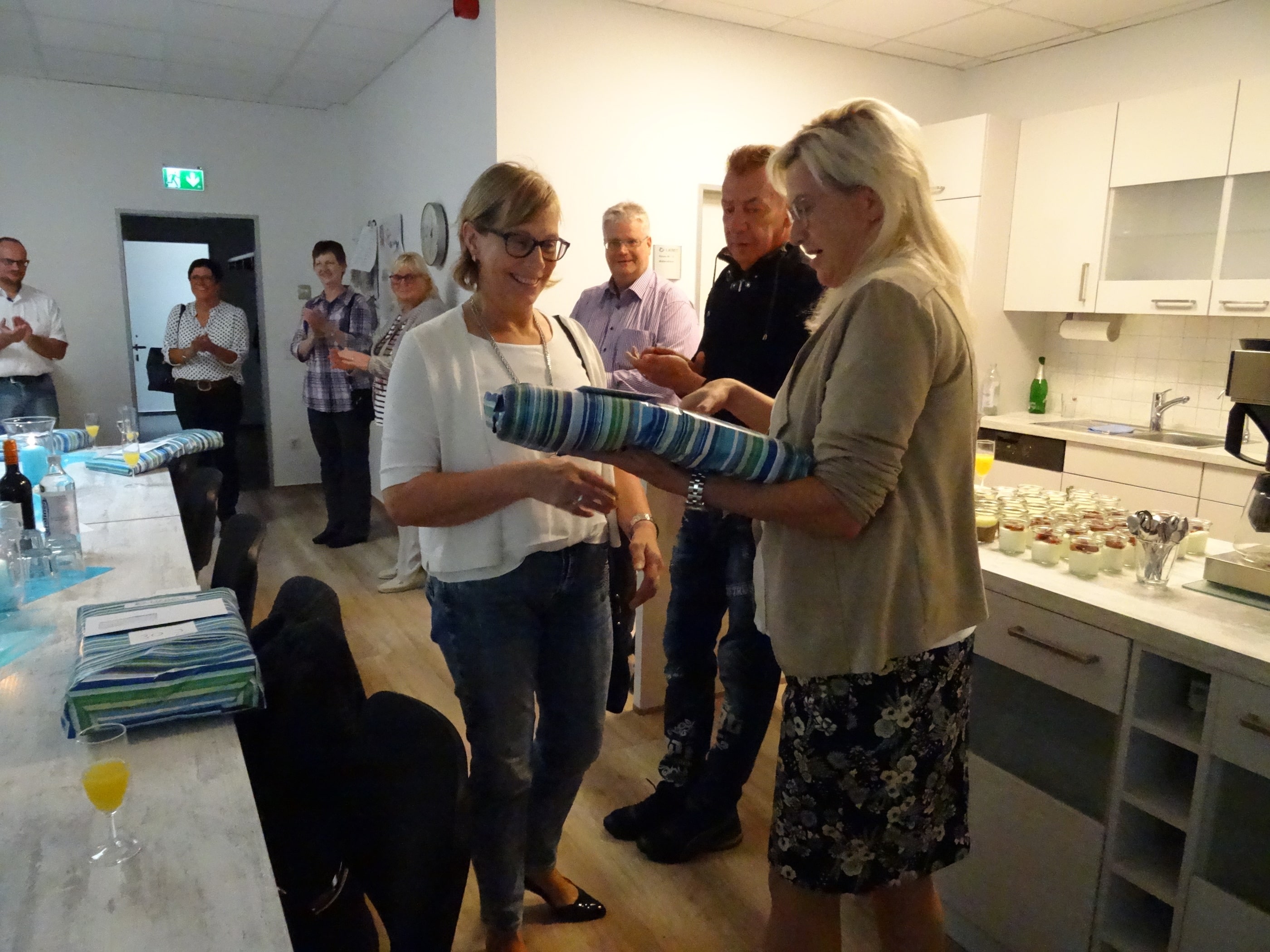 In diesem Jahr wurden neun Mitarbeiter für 25-jährige Mitarbeit, zwei Mitarbeiter für 30-jährige Tätigkeit, ein Mitarbeiter für 35-jährige Betriebszugehörigkeit und ein Liebelt-Mitarbeiter für 40(!)-jährige Tätigkeit geehrt. Allen von dieser Stelle aus noch einmal Herzlichen Glückwunsch.