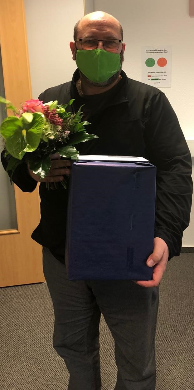 Seit nunmehr drei Jahren leitet Frank Kühnel unsere Niederlassung im hessischen Bad Arolsen. Prokurist Konrad Lohmann gratulierte mit einem Präsent ganz herzlich zu 35 Jahren Betriebszugehörigkeit.
